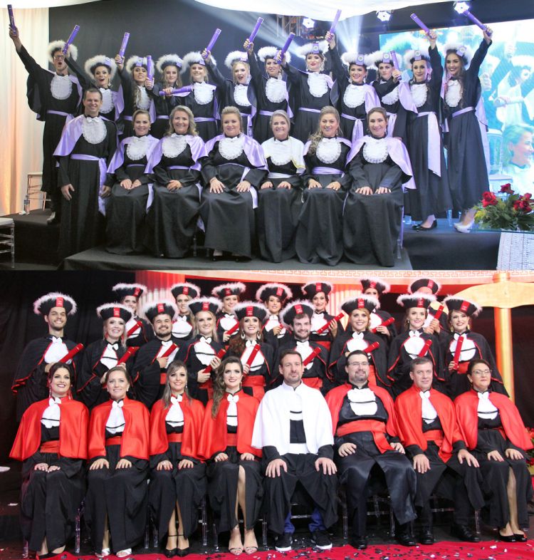 Na formatura de Pedagogia o juramento foi proferido pela Anelise do Nascimento, e a oratória pelas licenciadas Alessandra Kessler e Simone Soffiatti, que também recebeu o troféu de Mérito Acadêmico.