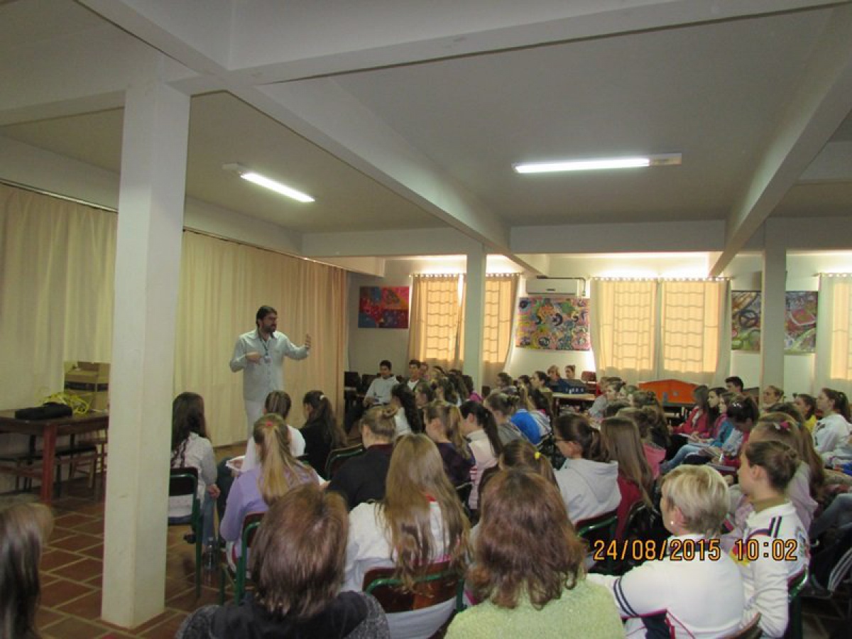 Na manhã da última segunda-feira, dia 24 de agosto, o professor Carlos Henrique Mallmann do curso de Direito da FAI Faculdades e membro do Grupo de Ação Comunitária (GAC), palestrou na EEB Madre Benvenuta - São João do Oeste/SC.