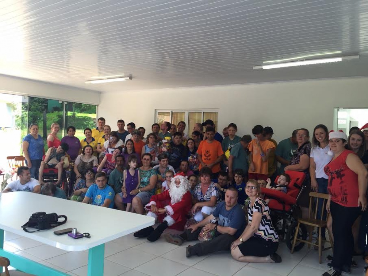 A segunda ação foi realizada no dia 11 de dezembro, na APAE de Itapiranga, que atualmente possui aproximadamente 55 alunos especiais. Em ambas as ações, houve o tão esperando momento da chegada do Papai Noel, que veio acompanhado dos seus ajudantes, levou brinquedos e doces para as crianças.