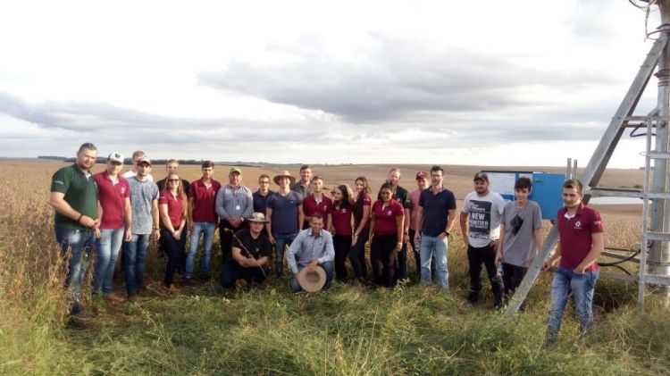 Posteriormente realizou-se visita técnica a propriedade rural do Engenheiro Agrônomo José Rebelato, em Campo Novo/RS. Na oportunidade foram visitadas as lavouras com irrigação via pivô central, discutindo-se assuntos relativos ao uso da água, construção de barragens, necessidade de irrigação, manejo do solo e de culturas. José Rebelato apresentou informações relevantes e reais sobre a agricultura, a necessidade de investimentos e do retorno que a produção permite em função de se trabalhar de forma profissional, como uma empresa rural administrada pelo Engenheiro Agrônomo.