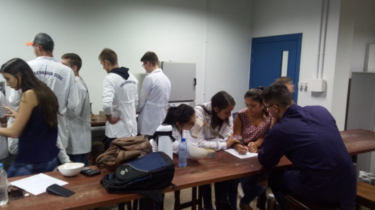 Acadêmicos do 5º semestre de Engenharia Civil, sob a orientação do professor Givanildo Martins de Quadros, na disciplina de Mecânica dos Solos, realizaram nesta quarta-feira (27/02) ensaios de determinação de umidade do solo, essencial para a previsão do comportamento deste nas diversas áreas da construção, como na construção de barragens, terraplanagem e estradas. O teor de umidade é definido por Caputo (1997) como sendo ''[...] a relação entre o peso da água existente no solo e o peso seco das partículas sólidas do solo, expressa em porcentagem''. Foram realizados três tipos de ensaios, um em estufa e dois métodos rápidos para se realizarem em canteiros de obras.
