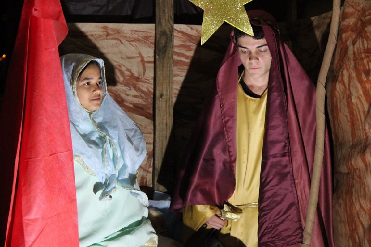Os acadêmicos se reuniram nas escadarias em frente a FAI, onde no estacionamento foi montado o palco, para a apresentação de cantos da Eduarda Raffaelli seguida de encenação natalina de um grupo de alunos da Vila União.