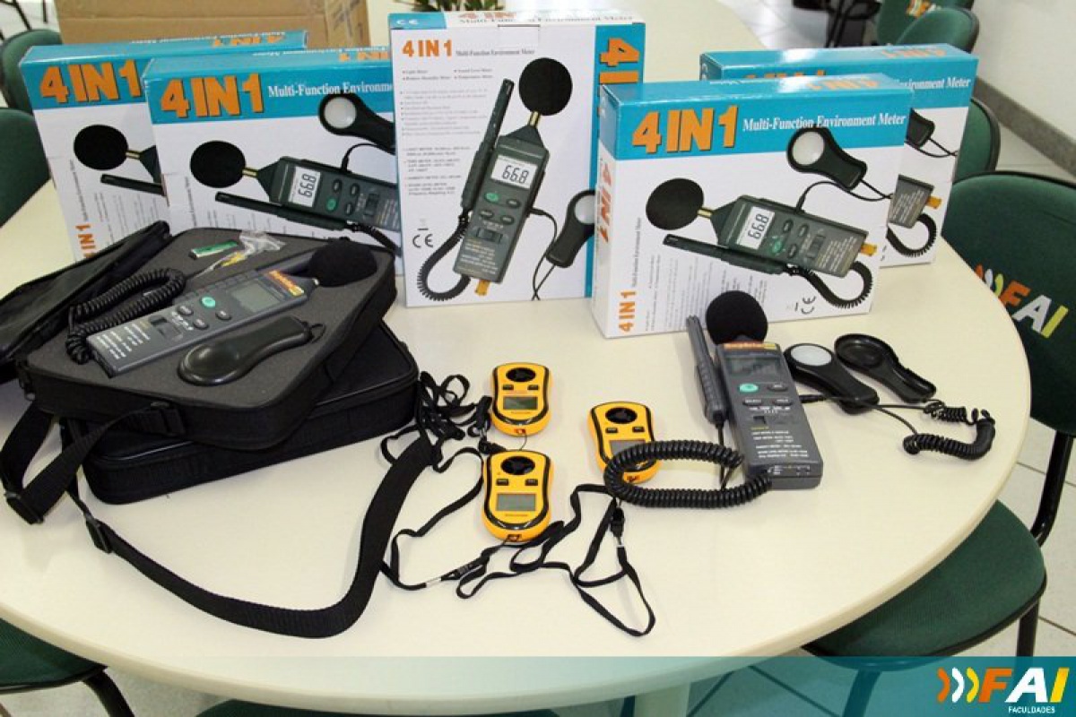 Na última semana chegaram na FAI Faculdades de Itapiranga novo aparelhos para o estudo do conforto ambiental, componente curricular do curso de Arquitetura e Urbanismo. De acordo com o coordenador, professor André Debarba, os equipamentos são: Higrômetro, que serve para medir a umidade presente nos gases, mais especificamente na atmosfera, identificando a presença de umidade excessiva ou abaixo do normal; Medidor de Nível de Pressão Sonora (MNPS), também chamado de decibelímetro, que é um equipamento utilizado para realizar a medição dos níveis de pressão sonora; Termômetro, usado para medir a temperatura ou as variações de temperatura ambiente; luxímetro, que é um aparelho utilizado para medir o nível de iluminação dos ambientes; Anemômetro, que é um instrumento utilizado para medir a velocidade do vento.