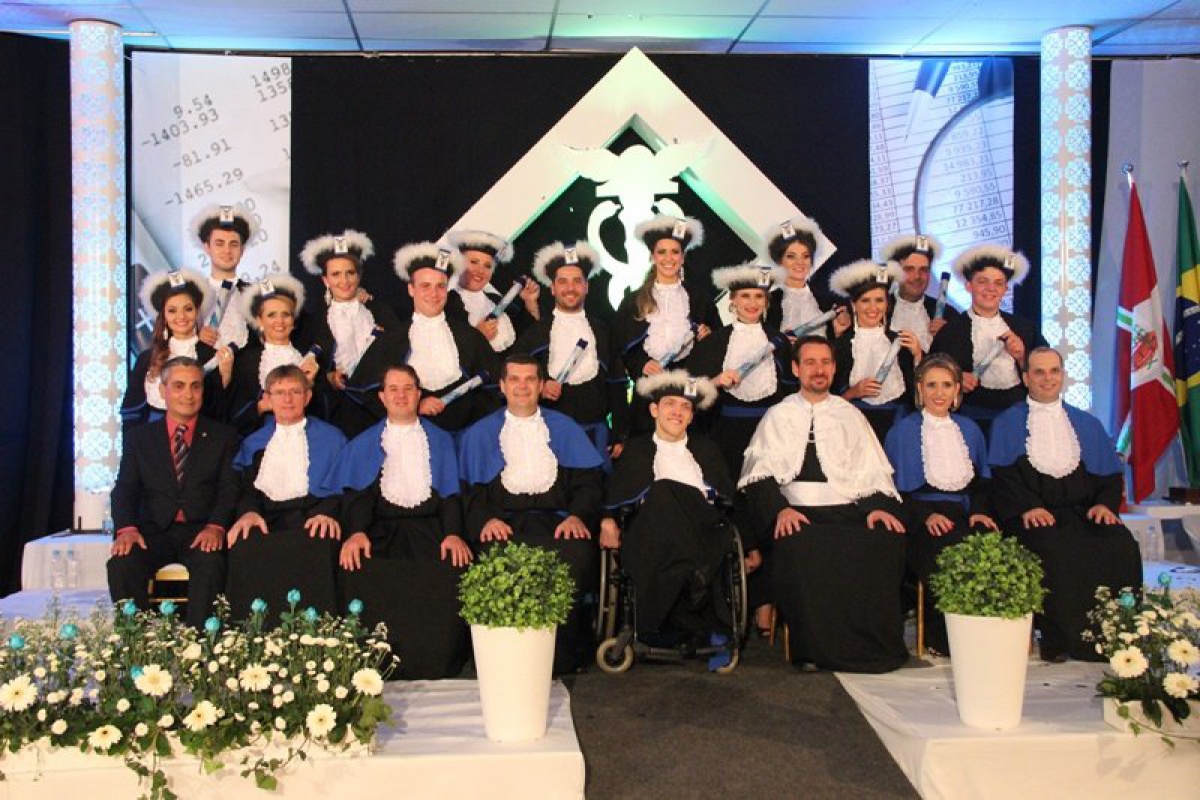 A cerimônia de Colação de Grau foi presidida pelo diretor geral da FAI Faculdades, Leandro Sorgato e acompanhada pela diretora de ensino, professora Lenir Luft Schmitz; o coordenador do curso de Ciências Contábeis e patrono da turma de formandos, professor Odir Luiz Fank; o Paraninfo, professor Adilson Fabris; os amigos da turma, professores Vilson Soethe e Eder Heberle; e o representante do CRC-SC, conselheiro Rudinei dos Santos.