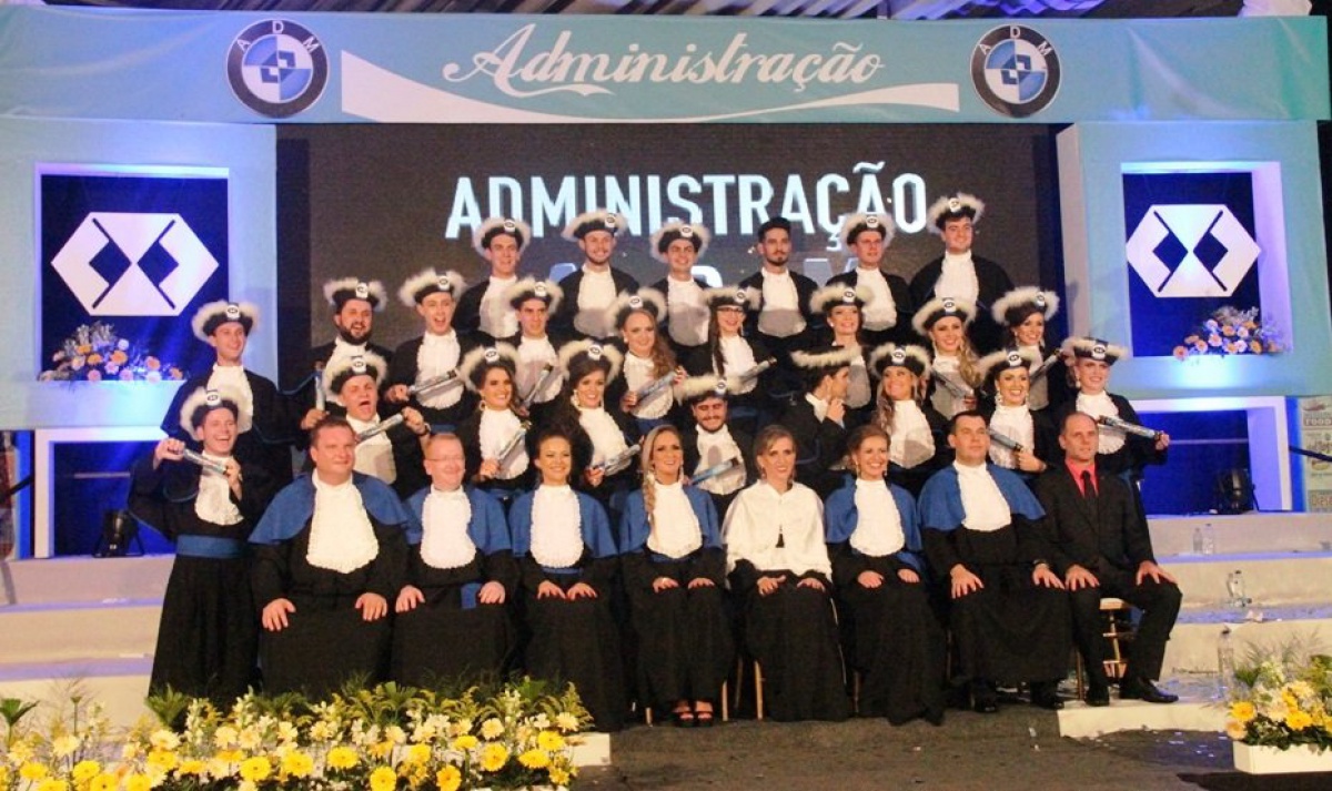 A festa de formatura do curso de Administração da FAI Faculdades de Itapiranga reuniu grande público no Complexo Oktober no sábado (18/02). A cerimônia de colação de grau teve início às 19 horas sob a presidência da Diretora de Ensino, professora Lenir Luft Schmitz e acompanhada pela representante da mantenedora, Karine Fonini; a coordenadora do curso de Administração e patrona dos formandos, professora Rosiane Oswal Flach; o paraninfo, professor Jamir Rauta; os professores amigos da turma Norberto Lengert, Adriane Jantsch Dal Bosco e Marco Rambo; e ainda o representante do Conselho Regional de Administração, conselheiro Paulo Sérgio Jordani.