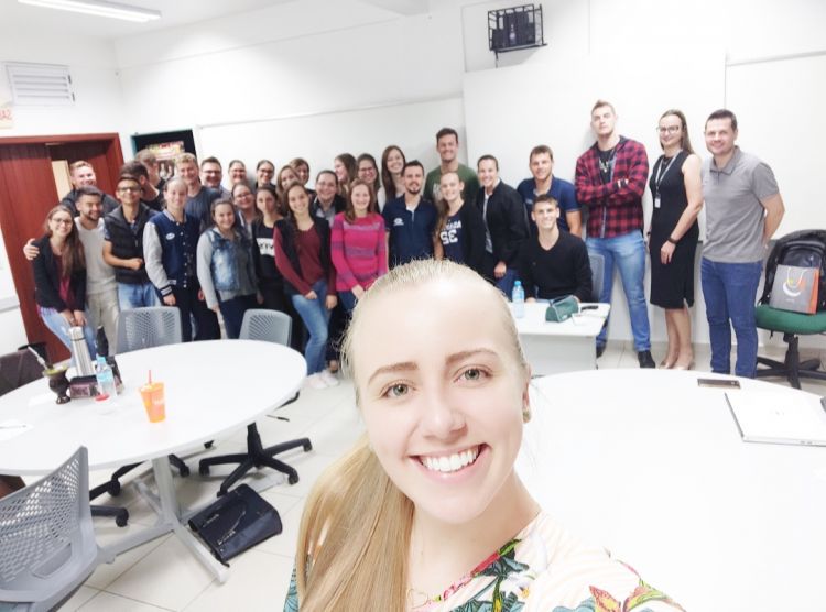 Na última semana, dia 12 de setembro, na disciplina de Gestão de Comércio Exterior do 8º semestre de Administração, ministrada pela professora Camila Paulus Link, foi realizado um bate-papo com o gerente de compras da empresa Torfresma, Eduardo Andre Kollet, sobre os procedimentos da Gestão Internacional da Empresa. A empresa realiza o processo de importação e exportação de máquinas e equipamentos.
