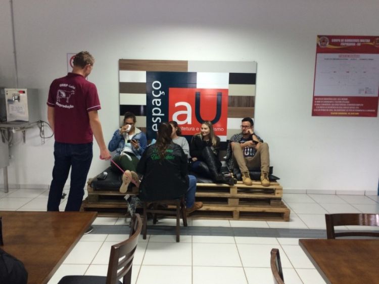 O laboratório experimental de engenharia, arquitetura e urbanismo (LEAU) finalizou o novo layout do espaço de convivência no bloco C da UCEFF de Itapiranga. Com a utilização de Pallets para o mobiliário, a intenção da proposta é oferecer um espaço mais interativo para os estudantes.