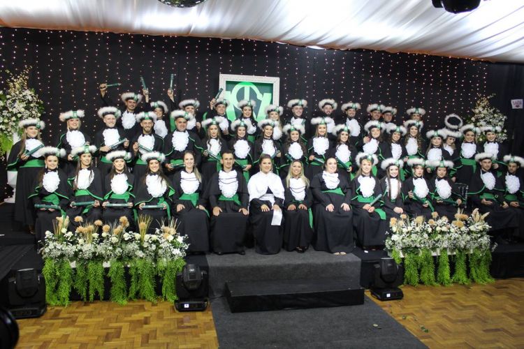 No último sábado (17/2) um grupo de 41 acadêmicos realizou a Colação de Grau no Clube Imigrantes de Itapiranga. A cerimônia foi presidida pela pró-reitora acadêmica, professora Alexandra Raffaelli, e acompanhada pela paraninfa, professora Milena Tomasi Bassani; patrona, professora Fernanda Rosa; professora homenageada, Delciani Gebert; amigo da turma, professor Anderson Douglas Kummer.