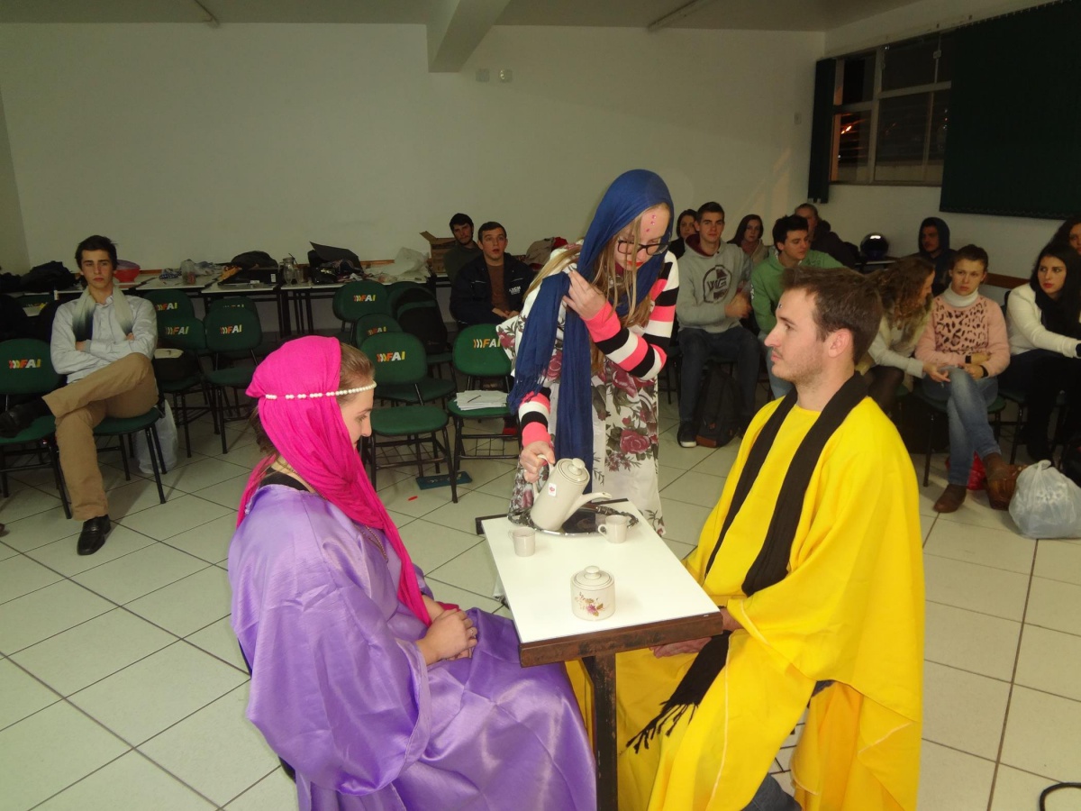 Os acadêmicos foram desafiados a transmitir aos colegas as principais características dos povos Hinduísta, Muçulmano, Judeu, Chinês e Cristãos. Conforme a Professora Adriane Dal Bosco, a utilização de metodologias ativas dinamiza o processo de ensino aprendizagem, uma vez que os acadêmicos são os atores principais do processo de ensino.