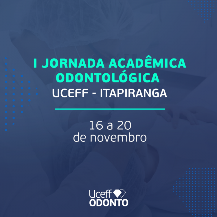 A I Jornada Acadêmica Odontológica da UCEFF Itapiranga, organizada em parceria com o Centro Acadêmico do curso (CADONTO) ocorrerá entre os dias 16 e 20 de novembro de 2020. As palestras serão realizadas de por meio da plataforma Google Meet, com início sempre ás 19 horas.