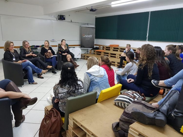 Já no dia 02 de julho aconteceu o diálogo referente a experiência da viagem, com a participação da egressa do curso de Direito Ketlin Wolschick, que socializou o Trabalho de Conclusão de Curso “O Direito à Educação dos adolescentes que cumprem medida socioeducativa de internação no Centro de Atendimento Socioeducativo de Chapecó – SC”, e a orientadora deste trabalho, professora Izabel Preis Welter.