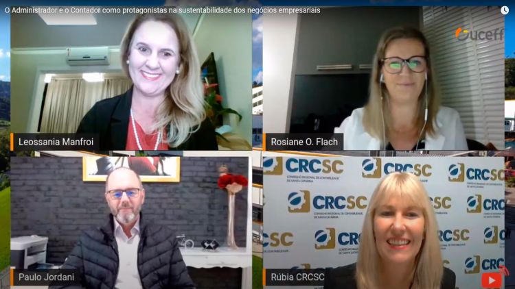 Na noite da última sexta-feira (29/05) os presidentes dos conselhos de classe Paulo Sérgio Jordani do CRA e Rúbia Albers Magalhães do CRC participaram de uma conversa com acadêmicos e professores dos cursos de Gestão e Negócios, com o tema: O Administrador e o Contador como protagonistas na sustentabilidade dos negócios empresariais.