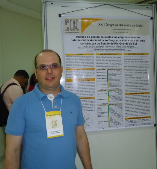 O artigo apresentado, possui coautoria de Luciano Albarello (IPOG) e Cristiane Botezini (UFRGS) e, abordou a análise da gestão de custos em empreendimentos habitacionais vinculados ao Programa Minha Casa Minha Vida em 180 unidades habitacionais. O estudo de caso discorreu sobre a gestão de custos em projetos de construção e suas implicações para o sucesso das empresas. Justificado pela importância em incorporar boas práticas para controladoria dos projetos e como apoio às decisões corporativas, as teorias estudadas identificaram-se práticas sugeridas pelo Project Management Institute (PMI®), aliadas ao Método de Melhorias Contínuas PDCA e, na sequência, analisadas quais destas foram adotadas para melhorias das práticas de gestão em projetos habitacionais.