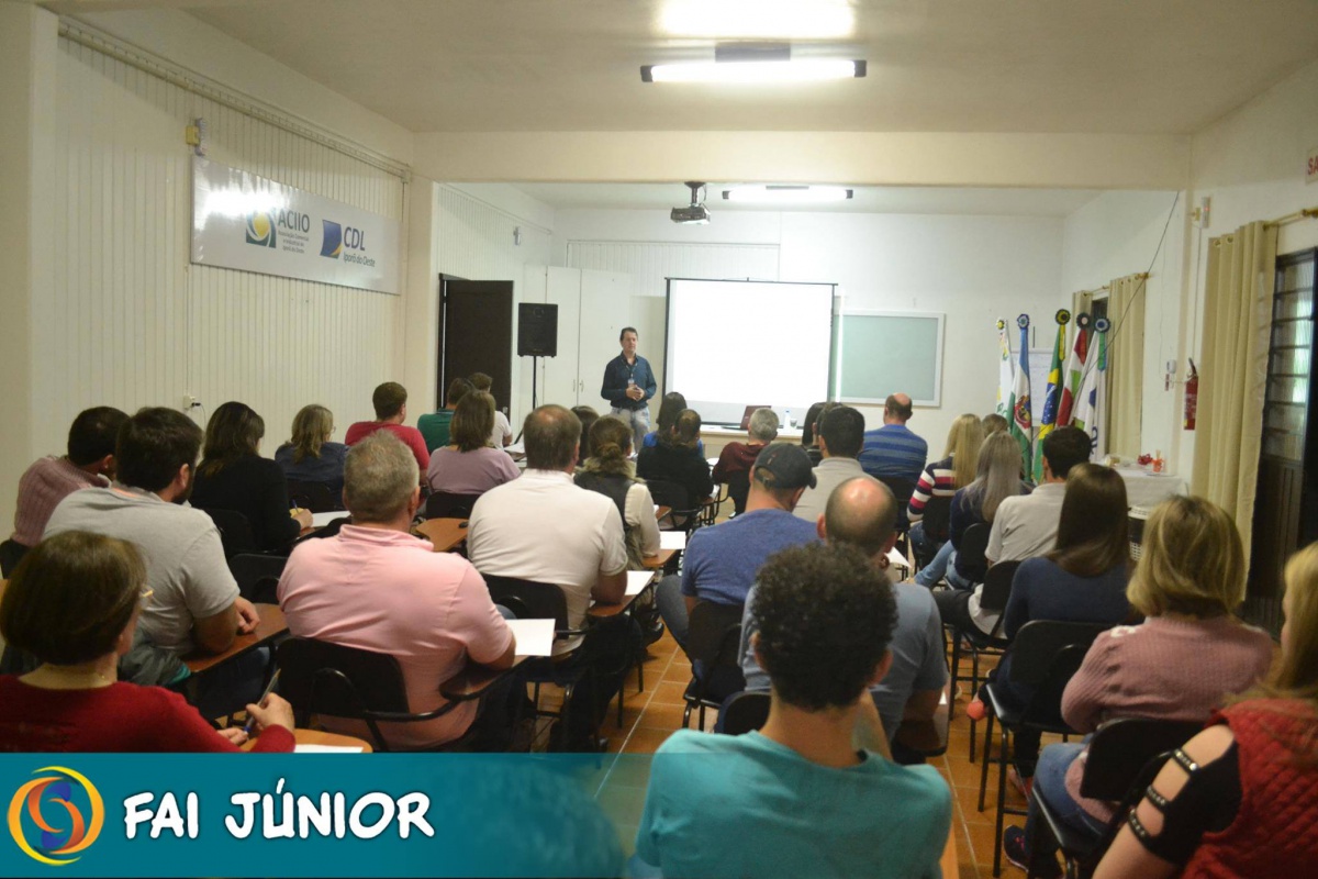 A FAI Júnior, além de trazer o curso de Gestão Empresarial, começou a oferecer palestras de diferentes temas. Uma delas ocorreu na sexta-feira,18 de agosto, em Iporã do Oeste, solicitada pela Associação Comercial e Industrial e foi desenvolvida pelo professor Eder Luis Heberle com o tema: A Importância da Formação do Preço de Venda.