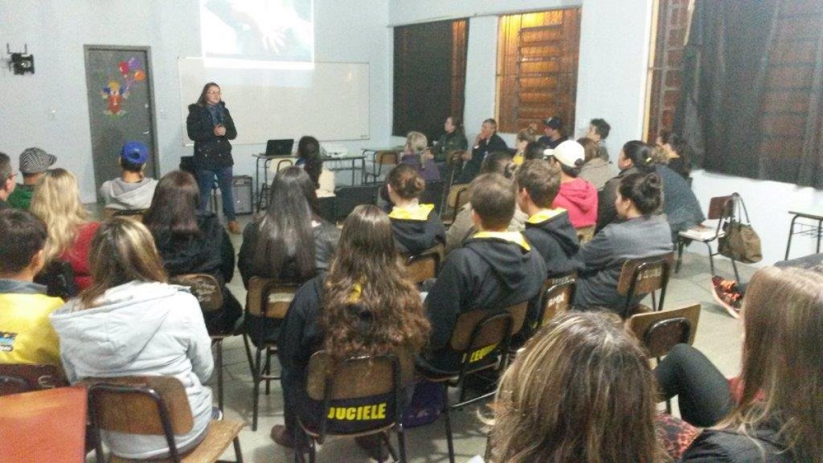 As professoras da FAI Faculdades Juliane Colling e Beatriz Moesch palestraram na noite desta segunda-feira (6/7) para alunos do Ensino Médio e CEJA da Escola Estadual Souza Neto e Instituto Visconde de Taunay de Irai - RS.