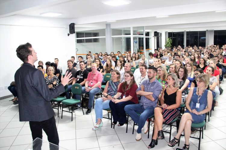 O evento contou com a presença de mais de 200 pessoas, as quais ficaram encantadas com o carisma do palestrante e seu modo de cativar a atenção dos presentes com as informações.
