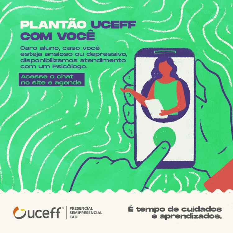 Pensando no bem estar de seus acadêmicos, a UCEFF está disponibilizando o UCEFF com Você, um plantão psicológico para atender todos que estiverem passando por um momento difícil por conta da pandemia do Covid-19. A UCEFF acredita que este é um momento de cuidado, não apenas de sua saúde, mas da sociedade. Caso você esteja ansioso, depressivo, ou quiser conversar, acesse o chat no nosso site que iremos acolher suas demandas emocionais.