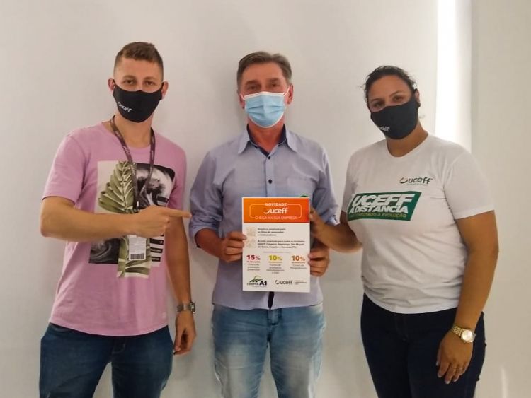 Os colaboradores do setor de relacionamento da UCEFF, Francieli Tibes Zani e Augusto Lehr, explicam a importância da parceria e poder chegar a mais pessoas com a possibilidade de acesso à educação de qualidade em qualquer um dos nossos espaços. “Queremos celebrar essa importante parceria e agradecer a Cooper A1 em nome de um dos seus diretores, o senhor Helio Casarin, fundamental para essa parceria”, relatam.