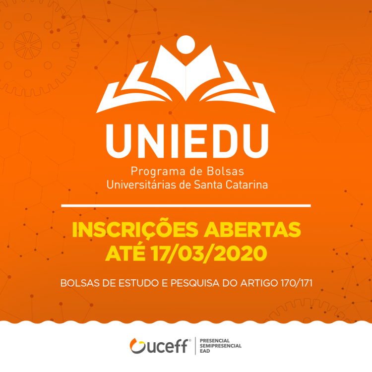Estudantes de graduação, fiquem atentos, pois as inscrições para o Programa de Bolsas Universitárias de Santa Catarina (Uniedu) já estão abertas. Os interessados em solicitar o benefício devem preencher dois formulários até às 23h59 do dia 17 de março. O primeiro está disponível no Uniedu (salve o comprovante de inscrição para anexar à documentação complementar) e o outro no site da Associação de Mantenedoras Particulares de Ensino (Ampesc).