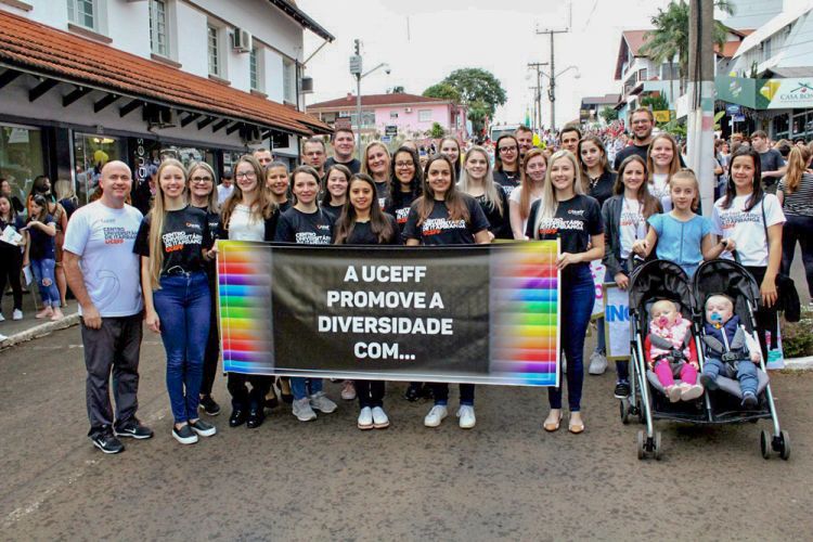 Neste ano, a UCEFF participou dos desfiles com acadêmicos, professores e colaboradores representando a diversidade existente na Instituição.