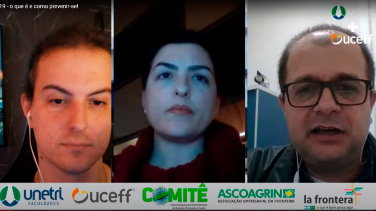 Na noite desta segunda-feira (6/7) a Unetri em parceria com a UCEFF promoveu palestra online na região de fronteira sobre o "Covid-19 o que é e como prevenir-se". O evento contou com o apoio da Associação Empresarial da Fronteira (ASCOAGRIN), o Comitê de Enfrentamento ao Coronavírus do Consórcio Intermunicipal de Fronteira, e o grupo social La Frontera.