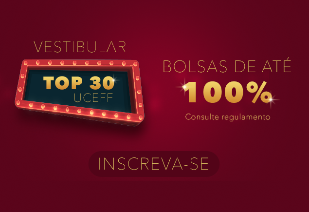 A UCEFF está lançando em 2021 a primeira edição do Vestibular de Bolsas Top 30. A instituição está oferecendo bolsas de até 100% de desconto em toda a graduação. Para participar, o interessado deve se inscrever para realizar prova. Inscreva-se aqui!