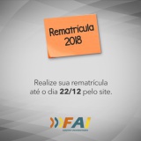 LEIA MAIS +As rematrículas para todos os cursos do Centro Universitário FAI devem ser feitas até 22 de dezembro. ...