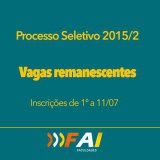LEIA MAIS +EDITAL DE PROCESSO SELETIVO PARA VAGAS REMANESCENTES - FAI 2015/2 1. ABERTURA A Faculd...