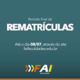LEIA MAIS +Segue até o dia 8 de julho o período de rematrículas para todos os cursos da FAI Faculdades. A mensalida...