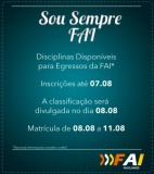 O Programa \"Sou Sempre FAI\" está com inscrições abertas para algumas disciplinas dos cursos de gradua...