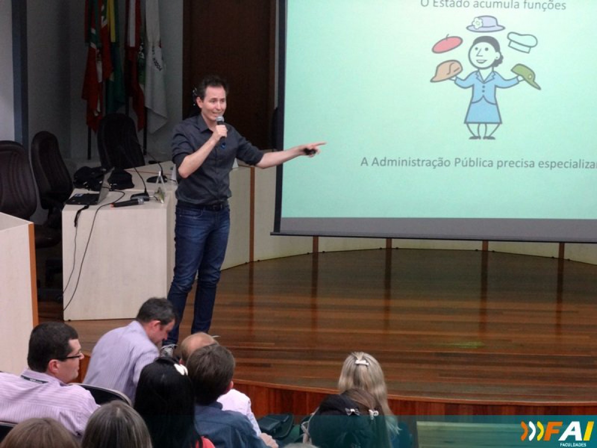 Na sexta-feira, dia 22 de agosto, acadêmicos dos cursos de Ciências Contábeis, Administração e Direito estiveram participando na Câmara de Vereadores de palestra com o professor Leonardo Secchi, que é doutor em estudos políticos pela Universidade de Milão, Itália. O palestrante abordou o tema Desafios e Oportunidades na Administração Pública, apresentando modelos de gestão utilizados pelos órgãos públicos.