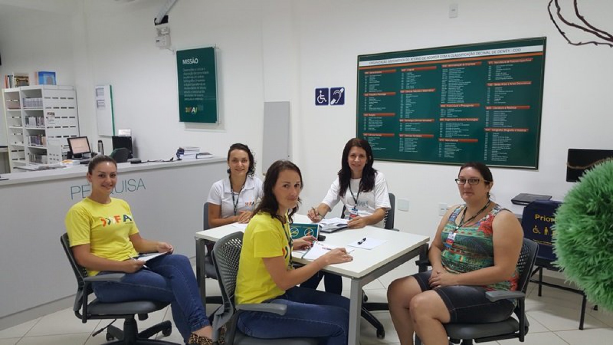 Na última semana (11/02) a equipe de colaboradores da Biblioteca da FAI Faculdades reuniu-se com o objetivo de preparar e definir detalhes do funcionamento do setor em 2016. O foco foi a qualidade dos serviços prestados no atendimento. Segundo a bibliotecária Marli Biesdorf a Biblioteca tem papel de preservação e disseminação de informação e conhecimento e portanto precisamos oferecer um serviço de qualidade com uma equipe preparada, dedicada e eficiente.