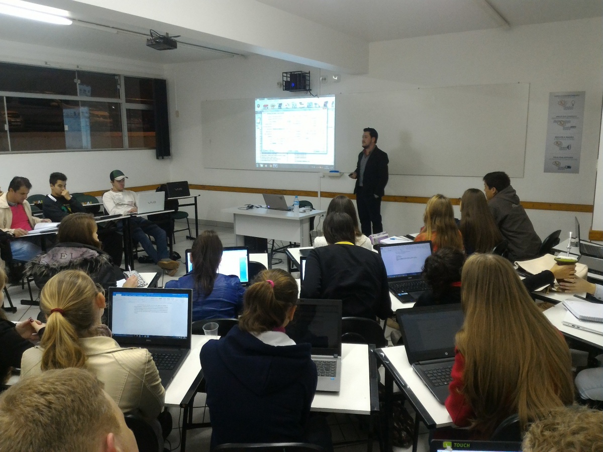 Na última semana (17/05) os cursos de Gestão (Administração e Gestão da Tecnologia da Informação) da FAI, tiveram a oportunidade de ter um bate papo com o empresário Franciel Kaiser, proprietário da Real Informática de Iporã do Oeste e representante comercial do CompuFour (Sistema de Gestão/Automação Comercial).