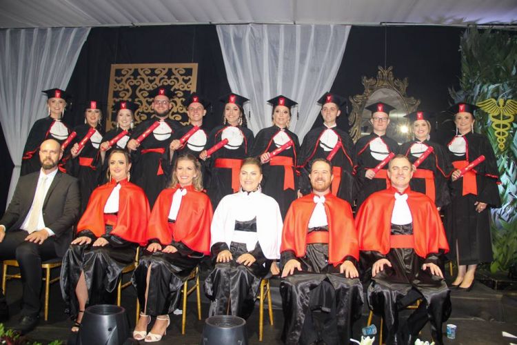 A cerimônia foi presidida pela pró-reitora acadêmica, professora Alexandra Franchini Raffaelli, e acompanhada da coordenadora do curso de Ciências Contábeis Rosiane Oswald Flach; o coordenador adjunto e paraninfo da turma de formandos, professor Éder Luis Heberle; o patrono da turma, professor Cristian Samuel Wandscheer; Amiga da turma, professora Camila Paulus Link; e o delegado de representação do CRCSC Vicente Royer, representando a Presidente Marisa Luciana Schvabe de Morais. O juramento foi proferido pela formanda Adriane Burg, enquanto a oratória ficou por conta da dupla Bárbara Rasch Pereira e William Luis Hammerschmitt, seguida das homenagens conduzidas pelo formando Lucas Schnorrenberger.