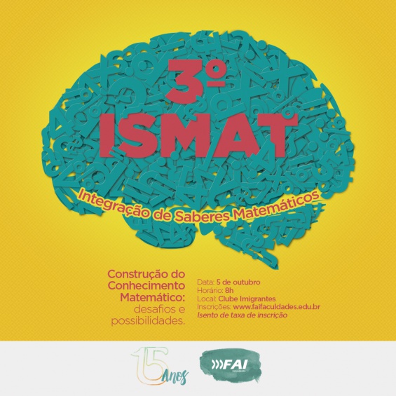 O curso de Licenciatura em Matemática da FAI Faculdades está preparando para o dia 5 de outubro a 3ª edição do Ismat - Integração dos Saberes Matemáticos, com o tema Construção do Conhecimento Matemático - desafios e possibilidades.