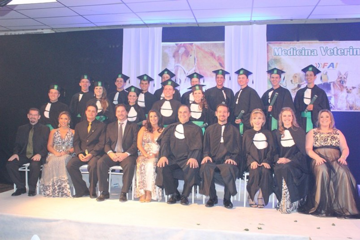 Na noite deste sábado (15/02) foi a vez da turma 3B de Medicina Veterinária fazer a festa em grande evento de formatura na Sociedade Imigrantes de Itapiranga. A sessão solene de colação de grau foi dirigida pelo Diretor Geral da FAI Faculdades Leandro Sorgato e acompanhada pela Diretora de Ensino, Lenir Luft Schmitz; o coordenador do curso de Medicina Veterinária e patrono da turma de formandos Sandro Charopen Machado; a paraninfa da turma, professora Marines de Castro; Professores Homenageados, Milena Tomasi Bassani e Giovani Krolikowski; Amigos da Turma, professores Fernanda de Souza Rosa e Marcelo Lauxen Locatelli. O acadêmico Marco Antônio Ebbing proferiu o juramento e também recebeu o prêmio de Mérito Acadêmico, enquanto a oratória principal ficou por conta do Nei Norberto Lamb e Mailson Gugel.
