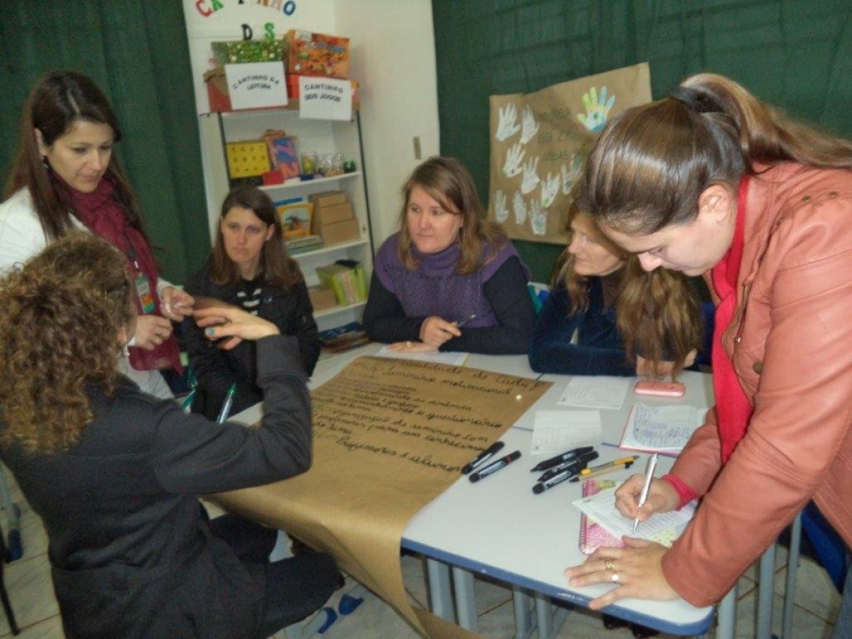 Dia 23 de julho, encontro com professores dos Anos Iniciais, ministrado pela professora Lisete Hahn Kaufmann, e Anos Finais ministrado pelas professoras Rosi Maria Prestes e Márcia Vanzin Boabaid, que trabalharam o tema interdisciplinaridade na prática docente, com oficinas de atividades específicas.