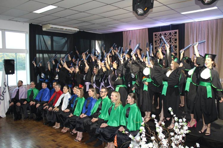 Na tarde do último sábado, 2/3, a UCEFF Itapiranga realizou em parceria com a Pontual Formaturas a cerimônia de Colação de Grau Institucional, com a participação de 65 formandos de 15 diferentes cursos: Administração, Agronomia, Análise e Desenvolvimento de Sistemas, Arquitetura e Urbanismo, Biomedicina, Ciências Contábeis, Direito, Educação Física, Engenharia Civil, Engenharia de Produção, Estética e Cosmética, Medicina Veterinária, Nutrição, Pedagogia e Sistemas de Informação.
