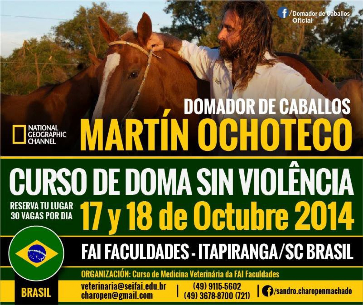 Está confirmado para o mês de outubro o curso com Martin Ochoteco, conhecido pelo programa que apresenta \"El Domador de Caballos\" no National Geographic Chanel. Martin realiza cursos no mundo todo e trabalha com uma forma diferente de domar cavalos, primando principalmente pela interação homem e animal, tendo por filosofia a ideia de boas ações no momento de amansá-lo.