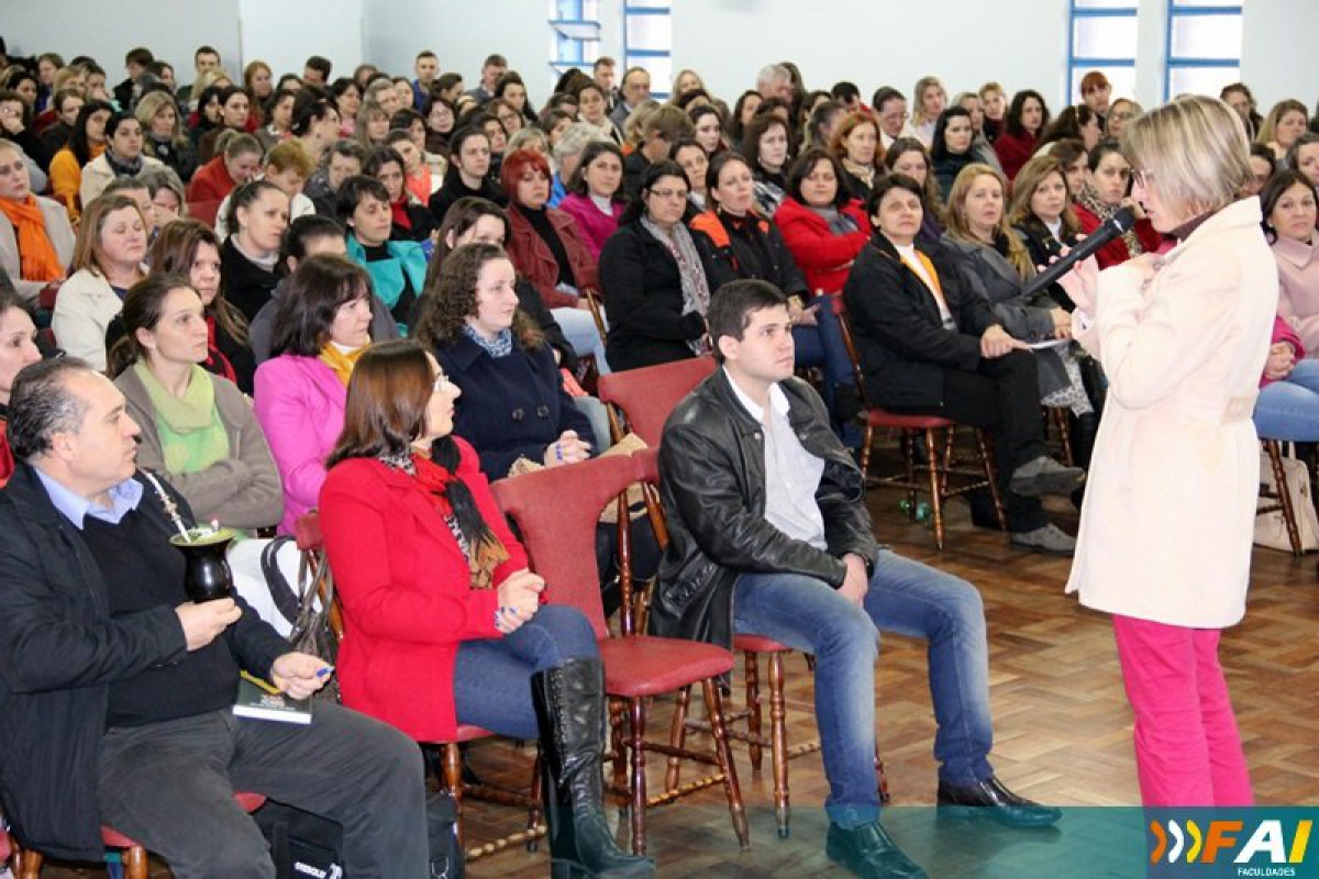 Os educadores participaram de duas palestras com docentes da Faculdade de Itapiranga (FAI). A professora Lenir Schmitz abriu os trabalhos com o tema A paixão de ser professor (a): ressignificando vivências e experiências na vida/escola. Em seguida, o professor Alain Kalema, abordou o tema O bem estar na arte de ser professor.