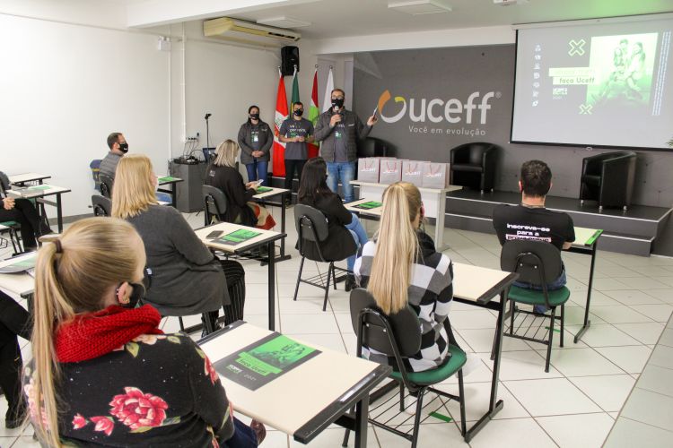 Nesta quarta-feira (6/8) a equipe do programa fez breve apresentação do UCEFF na Escola para reitoria e coordenadores de curso. O Programa, em sua 12ª edição, é uma atividade socialmente responsável de relacionamento e extensão que contempla as escolas com palestras, oficinas e visitas aos cursos da Instituição, além de auxiliar nas atividades promovidas pelas escolas, explicou o coordenador, professor Kurlan Frey.