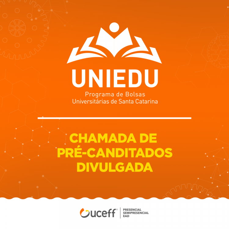 A UCEFF Itapiranga publicou nesta quarta-feira (15/4) a lista de pré-selecionados para bolsa do UNIEDU da Constituição do Estado de Santa Catarina. O prazo de entrega da documentação comprobatória vai até às 21h do dia 23 de abril, mediante agendamento, conforme Editais.