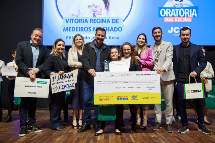 O dia das crianças foi cheio de emoções no Centro de Cultura e Eventos Plínio Arlindo de Nes com a final do projeto Oratória nas Escolas. O evento, que está na décima terceira edição, é promovido pela JCI Chapecó e patrocinado pela UCEFF. Participaram da competição estudantes das turmas de 7° e 8° ano da Rede Municipal e Rede Estadual de Ensino.